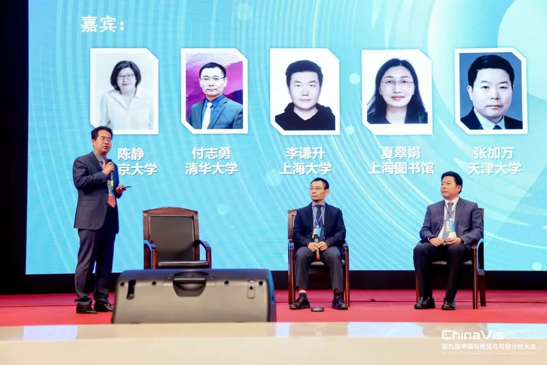 ChinaVis 2022首日圆桌论坛创新性探讨了“人文遇见可视化”交叉议题,该论坛由中国图象图形学学会可视化与可视分析专委会主任、北京大学袁晓如研究员主持。圆桌论坛邀请了南京大学陈静副教授、清华大学付志勇副教授、上海大学李谦升副教授、上海图书馆夏翠娟研究员、天津大学张加万教授、复旦大学张晓虹教授等六位专家学者参与,同与会嘉宾进行交流碰撞,共同探索可视化技术与数字人文潜在的结合点。
