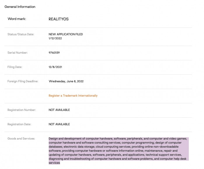 他指出,虽然这两份申请最初是在 2021 年 12 月 8 日提交的,但更有趣的是,它们都被列为外国申请日期截止日期为 2022 年 6 月 8 日,就在苹果的主要 WWDC 主题演讲后两天。美国专利商标局网站上的另一份文件列出的外国申请日期截止日期是 2022 年 6 月 9 日。
