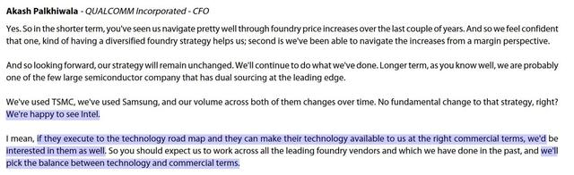 另外,高通还称自己是少数拥有领先优势的双重采购大型半导体公司之一。高通在代工方面选择过台积电也选择过三星,并且两家代工厂的订单也一直在变化中。