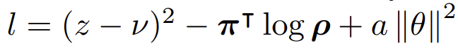 策略价值网络以当前状态 s 作为输入,输出动作概率分布 ρ 和一个状态值 ν。MCTS 利用策略网络 fθ(s) 来指导其模拟,并输出一个向量 π,表示可用操作的改进搜索概率。然后训练策略网络 (ρ, ν) = fθ(s) 以最小化预测状态值 ν 与情节后收到的奖励 z 之间的误差,并最大化两个概率分布 ρ 和 π 之间的相似性。损失函数为