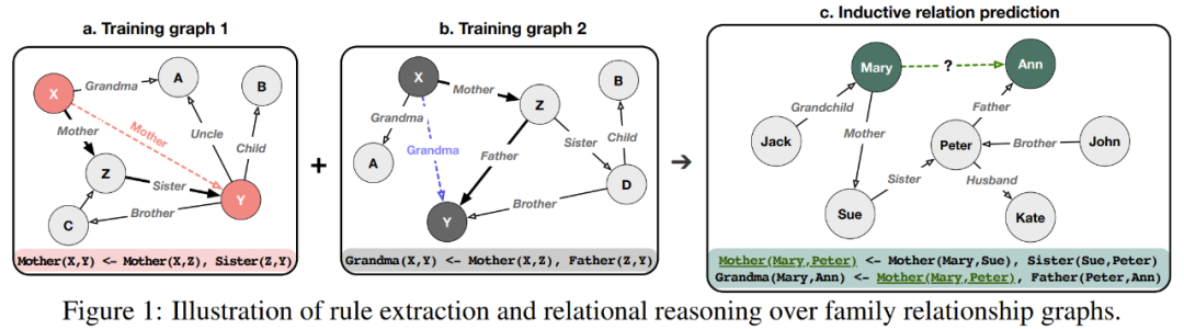本文所关注的系统性(Systematicity)要求具有强系统性的模型能够训练小规模任务并推广到大规模任务,如图所示,仅在 a&b 上训练的强系统性模型,应当能够解决 c 中的问题。举例来说,从 a 和 b 中可分别习得规则 (1) Mother (X,Y) ← Mother (X,Z), Sister (Z,Y),和规则 (2) Grandma (X,Y) ←Mother (X,Z), Father (Z,Y)。则在 c 中,我们能根据规则 (1) 得到 Mary 是 Peter 的 Mother,然后根据规则 (2) 得到 Mary 是 Ann 的 Grandma。