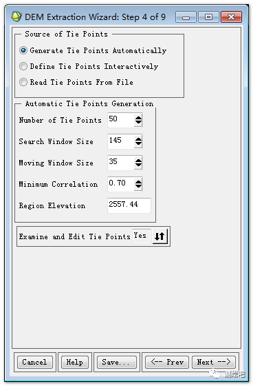利用ENVI的DEM提取模块,提取DEM信息。这是一个流程化的操作模块,根据标题提示设置参数后点击下一步,即可完成整个DEM提取的操作。(详细的操作流程,参照《ENVI遥感图像处理方法》。)