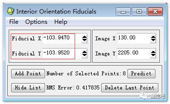 图2 Interior OrientationFiducials(内定向)窗口
