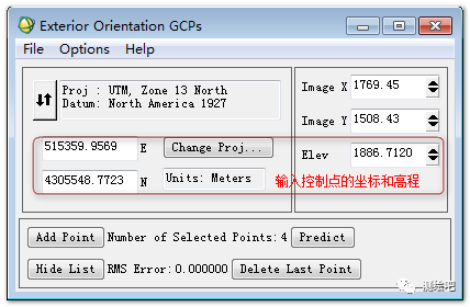 图5 外定向添加GCPs窗口