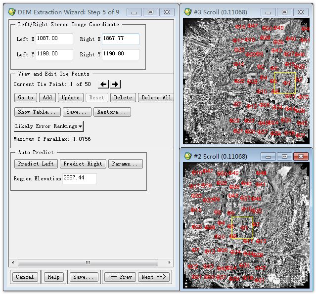 提供了三种定义连接点方式:自动寻找、交互式手工定义和外部读取控制点文件(图8)。选择合适的方式并输入合适的参数,点击Next按钮。软件自动寻找连接点(图9)。
