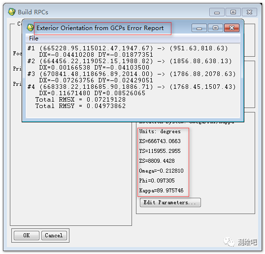 图6 根据GCPs计算外方位元素的误差报告