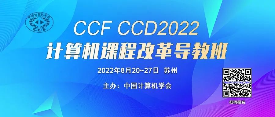一年一度的“CCF计算机课程改革导教班”——简称CCD,将于2022年8月20-27日在苏州举办(线上线下同步举办)。CCD由CCF于2013年创建,每年暑期举办,为期一周,邀请在计算机课程教学改革方面有心得、有经验的资深教师,就他们在一线教学的课程内容和教学方法做深度介绍,组织切磋交流,至今已成功举办八期。参加培训的教师通过CCD这个平台,将优秀的思想和经验融合到高校教学工作中。讲者专家们奉献付出,为中国计算机教学改革工作做出了宝贵的贡献。