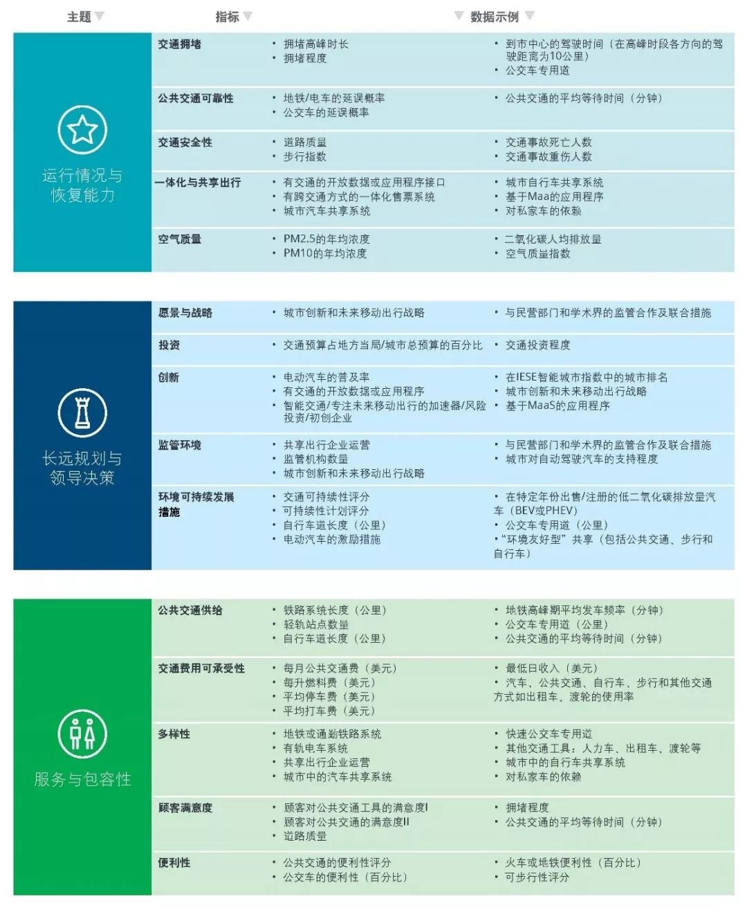 图 5 德勤城市移动出行指数主题、指标及所选数据