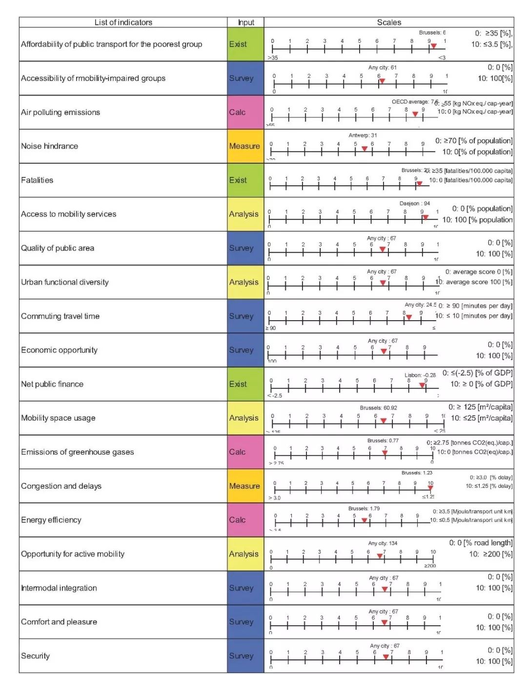 这些指标用SMART(具体的,可衡量的,可达到的,相关的,基于时间的)方法描述,这些方法将允许城市对其移动系统进行标准化评估。这些指标还将允许了解系统随时间的演变,并衡量实施新的移动性措施或政策所带来的改进。
