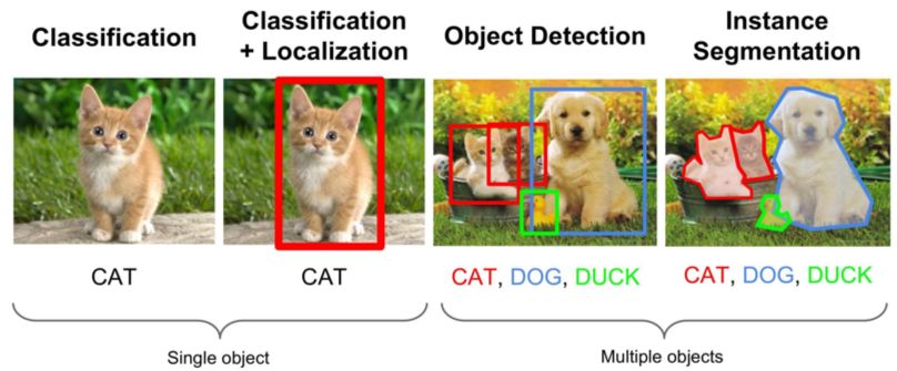 目标检测任务可分为两个关键的子任务:目标分类和目标定位。目标分类任务负责判断输入图像或图像区域(Proposal)中是否有感兴趣类别的物体出现,输出一系列带分数的标签表明感兴趣类别的物体出现在输入图像或所选择图像区域(Proposal)中的可能性。目标定位任务负责确定输入图像或所选择图像区域(Proposal)中感兴趣类别的物体的位置和范围,输出物体的包围盒、或物体中心、或物体的闭合边界等,通常使用方形包围盒,即Bounding Box用来表示物体的位置信息。