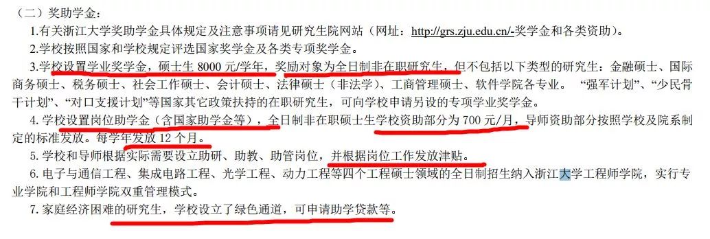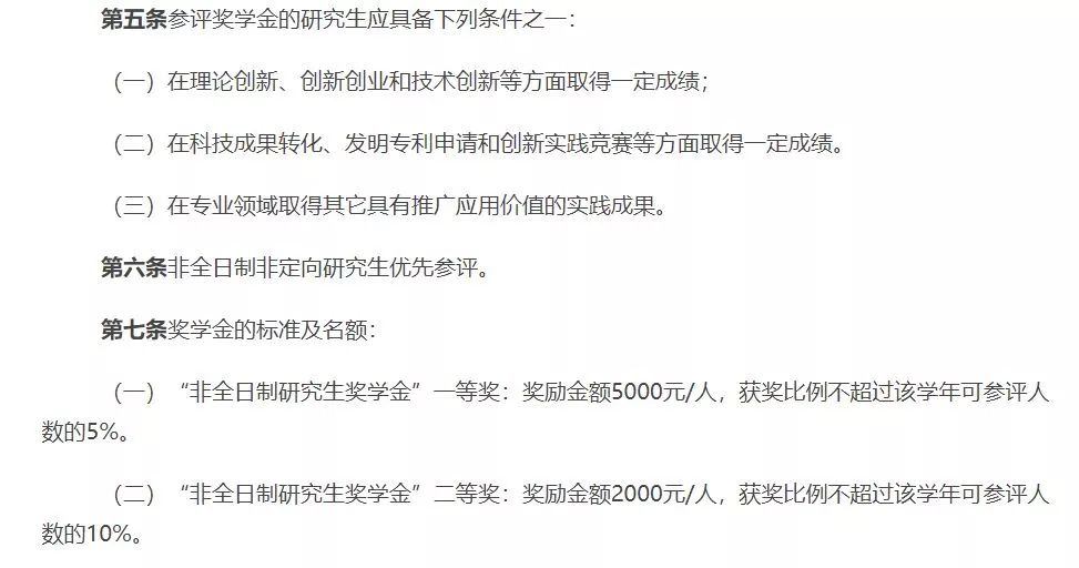 注意:非全日制不享受研究生国家助学金。但是对于非全日制非定向生,有些学校同样有奖学金政策,比如浙江大学非全日制研究生奖学金实施办法(试行):