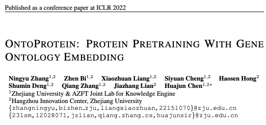第三篇文章是2022年1月23日发表在ICLR2022上的文章“OntoProtein:Pro