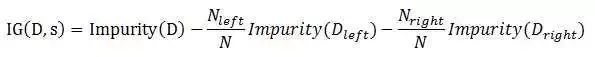 假设切分大小为N的数据集D为两个数据集D_left和D_right,那么信息增益可以表示为如下的形式。