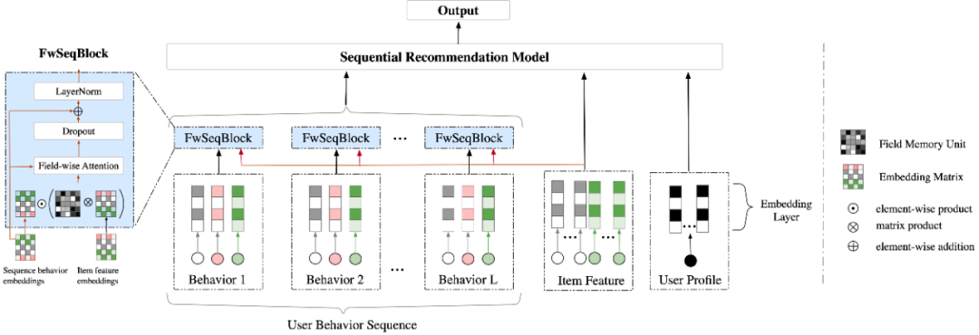 经过以上讨论,FwSeqBlock 聚焦于用户历史行为表征的生成中,具有可插拔的特点,因此可以很方便的与目前 SOTA 序列建模模型相结合。