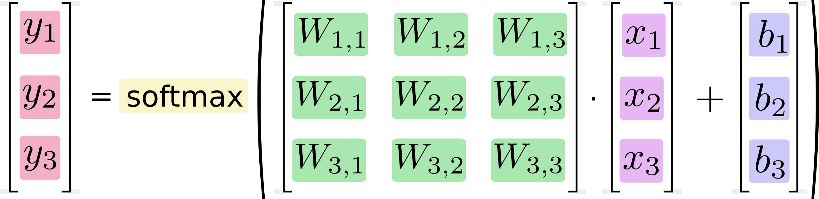 y = tf.nn.softmax(tf.matmul(x, W) + b)