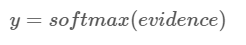 其中,w_i 和 b_i 分别为类别i的权值和偏置,j是输入图片 x的像素索引。然后,我们将得到的evidence值通过一个”softmax”函数转化为概率值y: