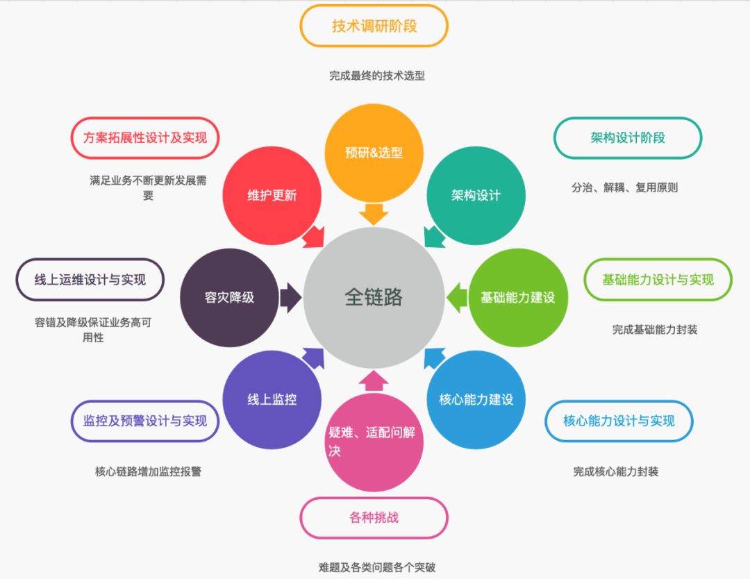 对于视频链路的开发,我们经历了方案选型、架构设计及优化、业务实践、功能测试、监控运维、更新维护等各个环节,核心环节如下图所示。在开发过程中,遇到了各种技术问题和挑战,下文会针对遇到的问题、挑战,及其解决方案进行重点阐述。