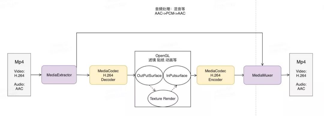 视频处理是整个视频能力最核心的部分,会涉及硬编解码(遵循OpenMAX框架)、OpenGL、音频处理等相关能力。
