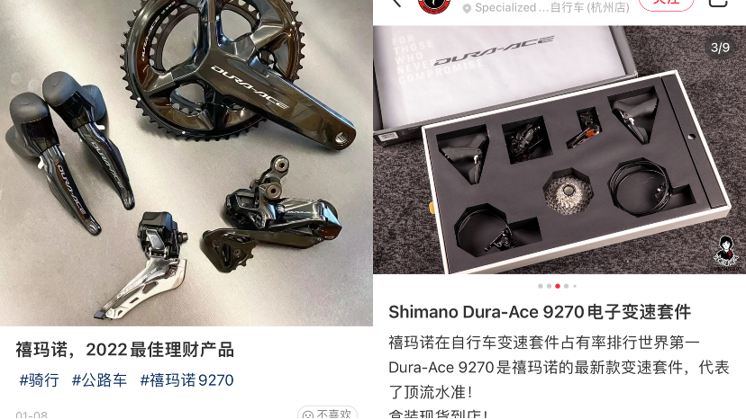 受疫情以来的自行车需求上涨以及原材料涨价等影响,禧玛诺套件如今已被车友称为“理财产品”,价格也水涨船高,如禧玛诺新款顶级电变9270大套,官方售价3万元,市面上已经炒到3.5万~3.7万元不等。