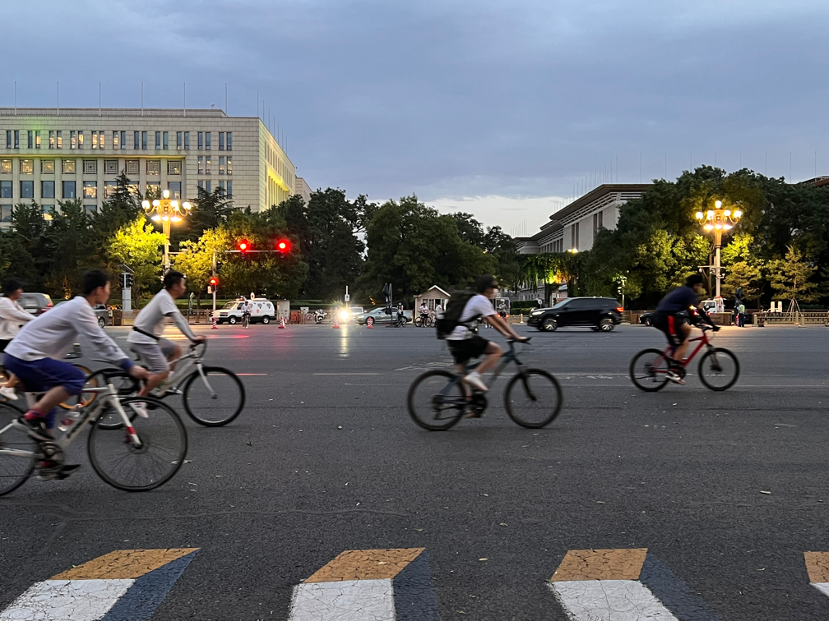 身着专业紧身骑行服、脚踏上了锁的公路车大佬,往往是第一个冲出人群。而后,变速折叠车、共享单车们紧跟其后。绿灯一亮,一群骑着自行车的男男女女,争先恐后地冲了出去。白帆形容端午节小长假北京长安街夜骑的场面,“如同下饺子”。