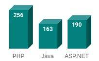 对比 Web 服务器上的 Java、ASP.NET 和 PHP 使用情况。
