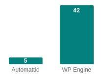 在《财富》千强公司中有 42 个客户端(约占 WordPress 安装的 30%)是 WP Engine,它显然表现很好。我们将其与 WordPress.com 背后的公司 Automattic 的托管服务做了对比,后者是为希望托管 WordPress 的公司提供的另一种高端服务。