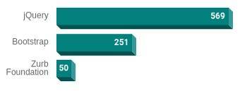 当下接触网站技术工作的人们都很熟悉这两种技术。就算我们知道它们有多流行,看到这两种资源的使用量如此之大也是很惊讶的。超过一半的《财富》千强 网站使用了 jQuery,bootstrap 则超过 25%。