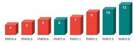 我们可以看到某些站点没有运行最新版本的 PHP,并且不会收到安全补丁。针对 PHP 生命周期终止版本 的问题,我们进行了另一项研究,研究了前 100 万个站点中 PHP 的状态。