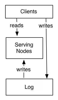 所有的数据直接写入 Log (或被 Serving Nodes 代理),然后所有的 Serving Nodes 通过订阅 Log 来建立索引,向外提供数据服务。这种设计就是以日志为中心 (log-centric) 的设计: