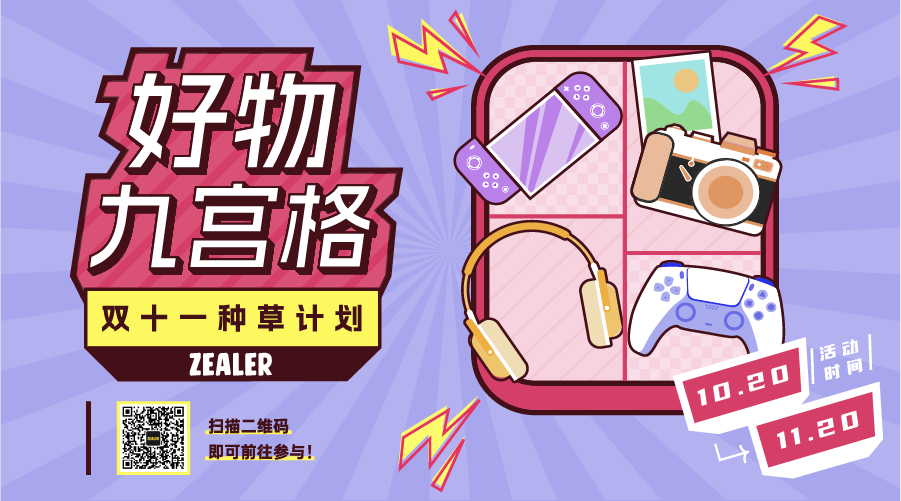 不套路!直接送钱!这个双十一,你准备入手哪些好产品?是购物车早已加爆,还是正在找功课凑齐满减?来 ZEALER App 分享你的「好物九宫格」,晒出你的双十一功课和好物推荐!参与活动即有机会成为好物推荐官,获得 ZEALER 提供的千元推荐官购物基金。扫上方二维码或戳左下角「阅读原文」即可前往参与。