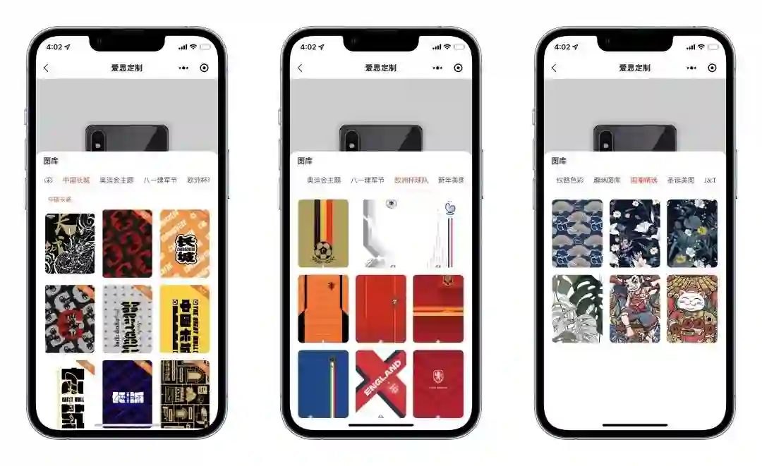 借助「爱思定制」丰富的模板和设计,从动漫设计、原创插画、球队明星、节假日插图等多种选择定制,让设计变得更简单。