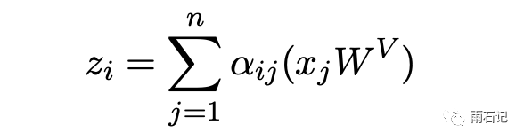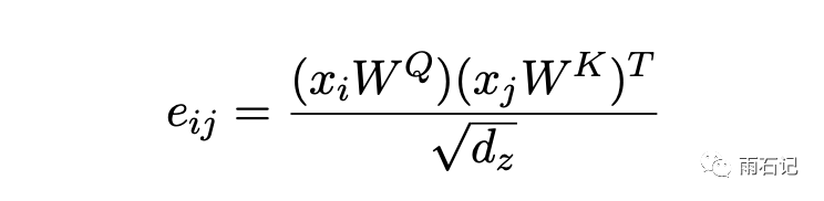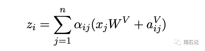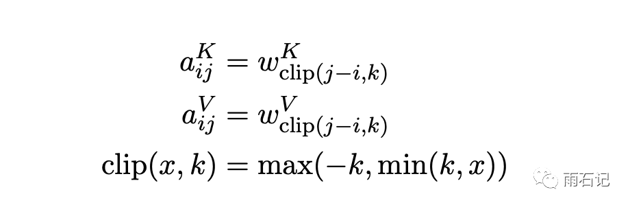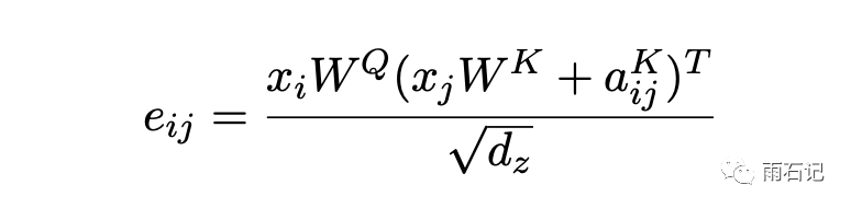 相对位置编码为每个不同的位置对都定义了两个向量,分别是αijV和αijK。在计算的时候,将上面的公式进行修改。