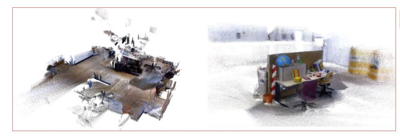 图1 使用我们提出的方法GCN,使用帧到帧相机运动估计(即,不使用关键帧和循环闭合)累积的RGB-D帧,用于关键点生成和匹配。数据是由一架绕着房间飞行的六架飞机上的RGB-D传感器收集的。