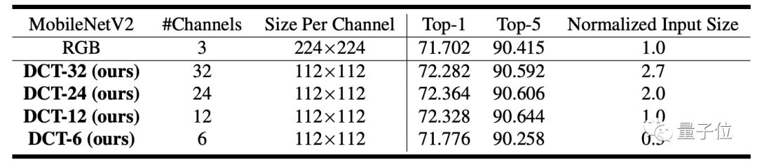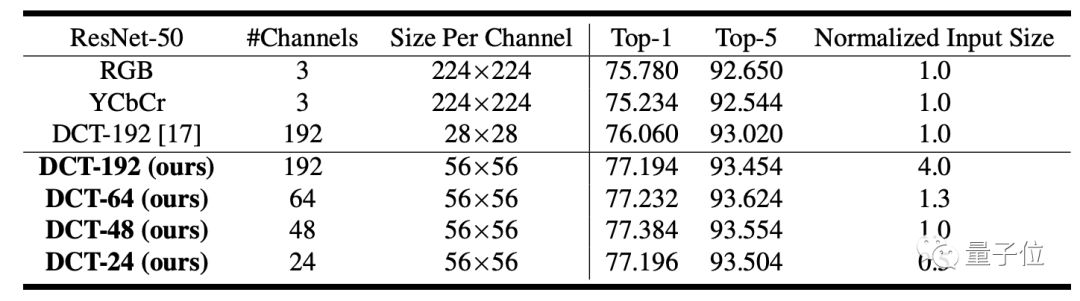 对于只有一半输入数据大小的 DCT-24来说,Top-1的精度仍然提高了约1% 。