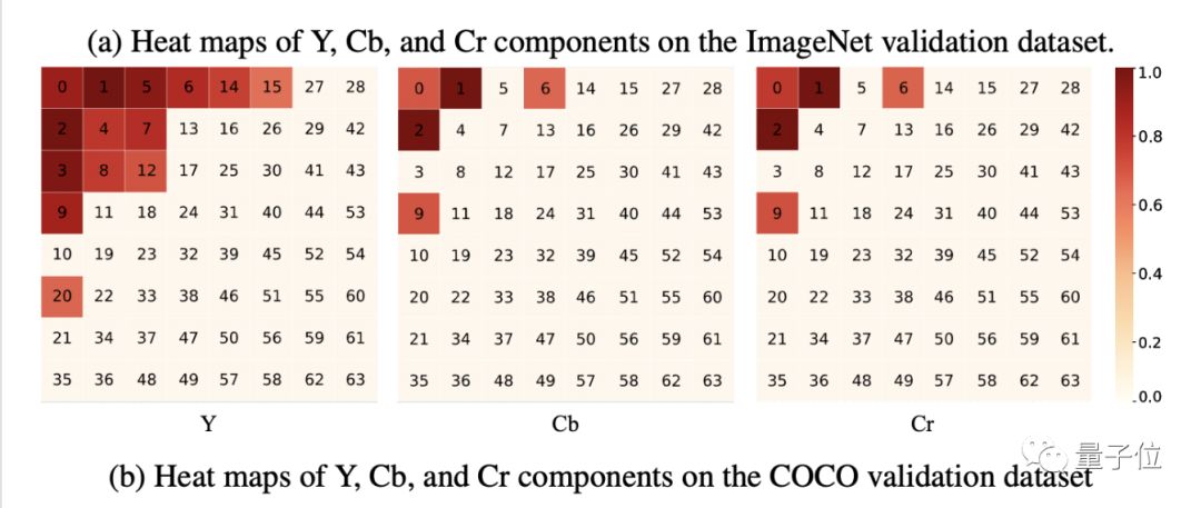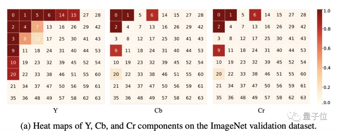可以看出,Y(亮度)通道的重要性高于Cb和Cr通道,同时低频分量的重要性高于高频分量。