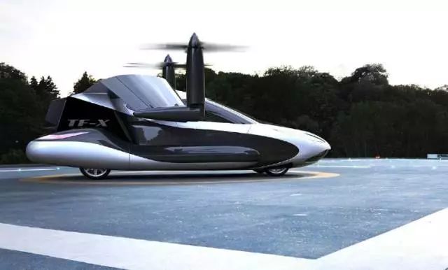 TF-X 是一款混合动力飞行汽车,它的两个螺旋桨依靠电动机驱动。据官方说,这两个电机输出功率可达 1 兆瓦。车上配有一台300马力的汽油机用来给电池充电,同时驱动涵道风扇转动。