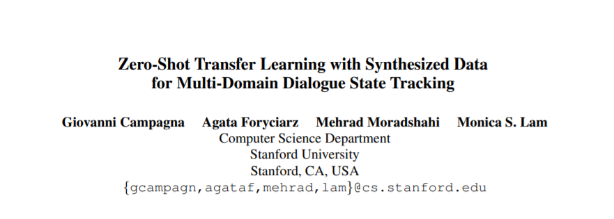 6. 利用合成数据进行零样本迁移学习,实现多域对话状态跟踪,Zero-Shot Transfer Learning with Synthesized Data for Multi-Domain Dialogue State Tracking
