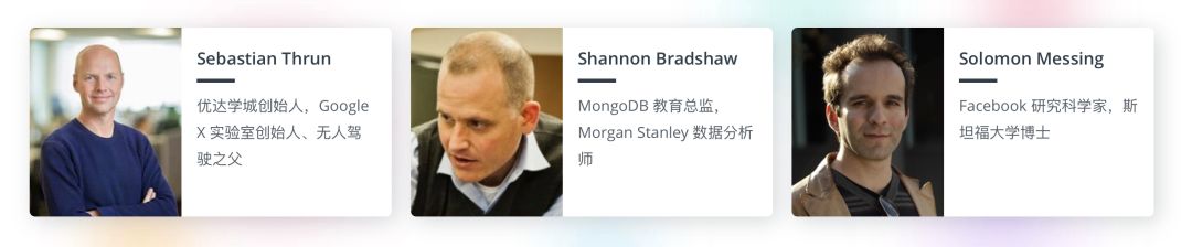 Udacity 是来自硅谷的在线学习平台,由 Google 无人车之父 Sebastion Thrun 创立。腾讯、京东、戴姆勒奔驰、唯品会等名企,都将 Udacity 纳米学位项目作为员工的内部培训内容。