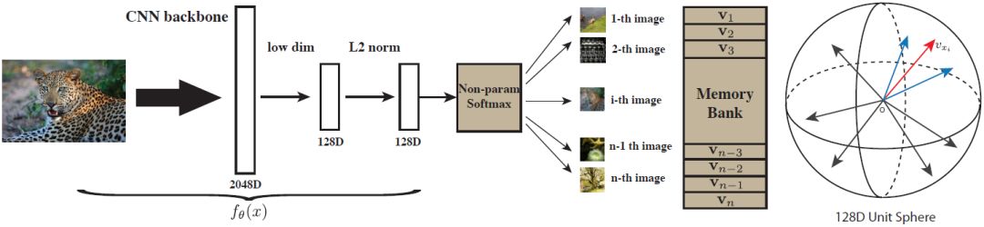 研究者提倡在训练和测试时都采用非参数化方法。他们将实例级别的分类看作度量学习问题,其中实例之间的距离(相似度)是以非参数方式直接从特征中计算得到的。也就是说,每个实例的特征都存储在离散的内存块中,而不是网络中的权重。
