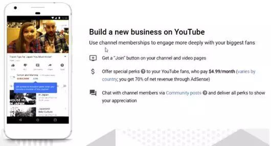 这一模式,美国的平台也在跟进。比如YouTube的“频道会员”,每个月4.99美金。能获得啥,完全由博主自己制定。