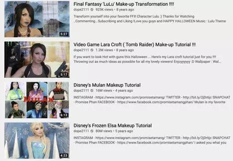 美国的dope 2111靠着化各种电影游戏角色的妆开创品类;国内,大家都知道的李佳绮就是靠试口红开创品类了。