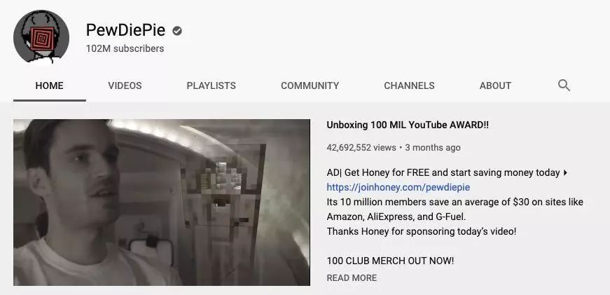 YouTube多年全网第一的PewDiePie,拥有超1亿粉丝。虽主业是游戏主播,但真正出圈的,还是靠新品类——自然而搞笑的人设,跳脱活泼的剪辑风格。作为“古早”期网红,新流量自然靠YouTube起飞。