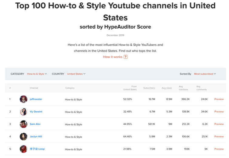在“How-to & Style(如何做&生活方式)”品类下,综合粉丝数、好评数、互动等各类数据,李子柒在美国的综合影响力排行,高居第五。前四名,有三个女美妆博主,加一个男潮牌博主—— 真资本主义Style。
