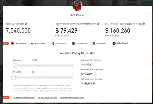 咱们来看看李子柒,根据Noxinfluencer工具推测,她的单支视频盈利能力高达16万美金。