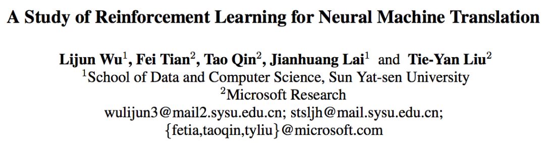 人工深度学习和神经网络已经为机器翻译带来了突破性的进展,强化学习也已经在游戏等领域取得了里程碑突破。中山大学数据科学与计算机学院和微软研究院的一项研究探索了强化学习在神经机器翻译领域的应用,相关论文已被 EMNLP 2018 接收,相关代码和数据集也已开源。