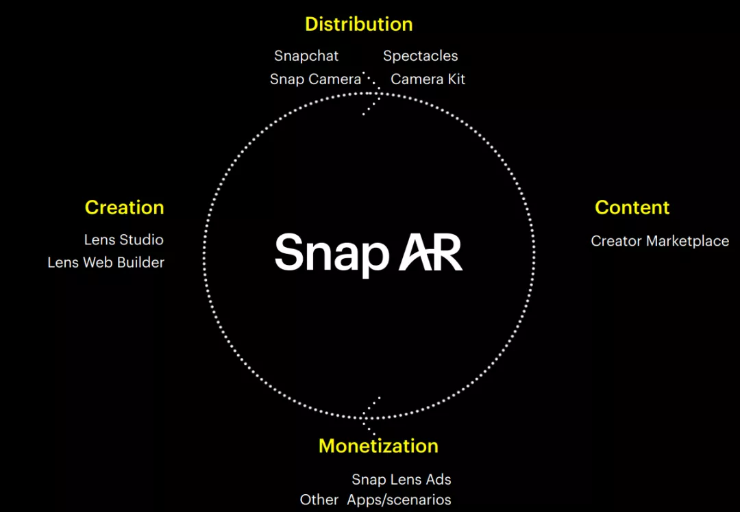 经过十年的发展,Snap已经构建起了一个完整的AR生态闭环: