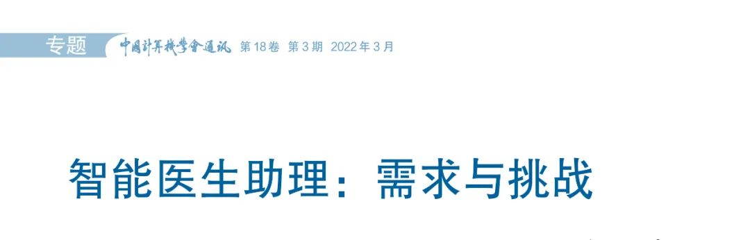 本期专题内容出自科技部科技创新2030-“新一代人工智能”重大项目《智能医生助理关键技术及应用研究》(No. 2020AAA0109400)的研究进展。值得一提的是,该项目的负责人和五位课题负责人均为女性,她们是北京大学教授金芝、南京大学教授姜远、北京大学副教授赵海燕、东软集团股份有限公司高级副总裁张霞、北京百度网讯科技有限公司高级研究员吕雅娟和中国医科大学附属第一医院主任医师韩晓旭。该项目能在激烈的竞争中脱颖而出并顺利实施,表明了科研创新领域不是女性的禁地,“她”力量亦可散发更耀眼的光芒,相信只要创造更平等的社会、职场环境,女性科技人才必然日益涌现,并在科技创新中发挥更大作用。本期专题特别献给CCCF三月女性专刊。