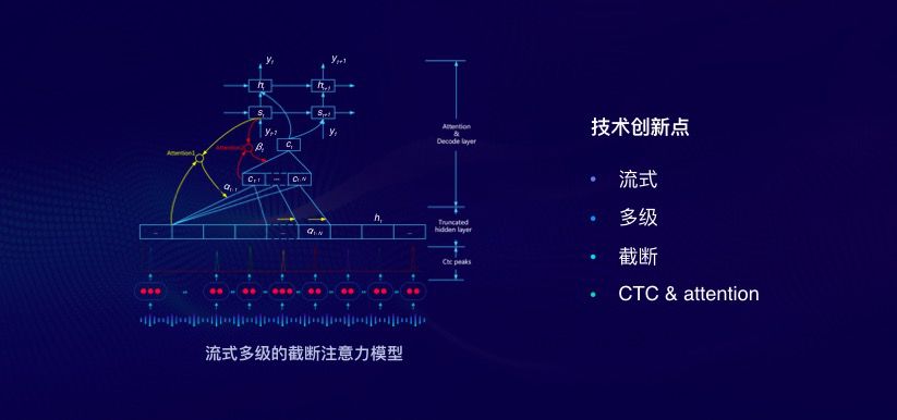 这就是流式的、多级的截断注意力模型,它解决了传统注意力模型不能进行流建模和解码的问题,并且依靠截断,实现了对长句子的高精准的注意力建模,同时也解决了 CTC 模型的插入或删除错误对注意力模型的影响。CTC 建模和注意力建模这两者的结合,对于学术或研究还是有很重要意义的,更不用说流式实时解码对工业应用的贡献了。