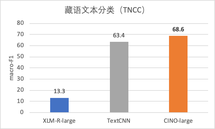 我们在新构建的WCM多语言分类数据集、KLUE推出的朝鲜语文本分类YNAT、复旦大学推出的藏语文本分类TNCC上验证了模型效果。CINO相比其他基线模型获得了显著的性能提升。