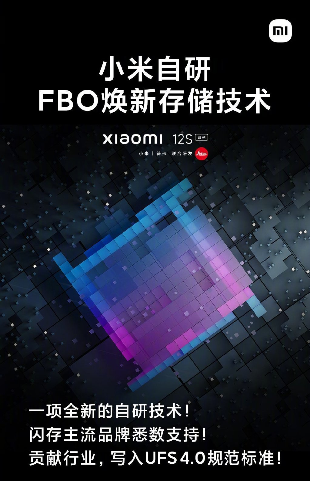 FBO 技术,在 UFS 存储芯片中自动检测、自动整理手机存储碎片。模拟 4 年使用测试,读写速度几乎无衰减。小米12S Ultra 已使用搭载这项技术的 UFS,系统体验更流畅。